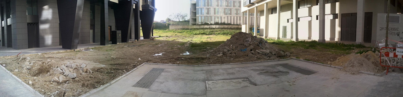 Vuestro propósito final es cuidar de la mejor manera posible uno de los jardines entre edificios evitando malgastar el dinero que se os asigna para el cuidado. Pongamos como ejemplo el que hay entre el 34 y el 36 de Teixugueiras.
